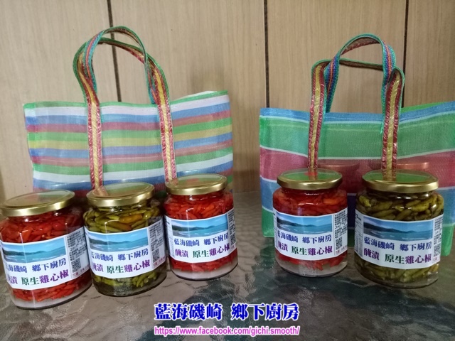 「藍海磯崎 鄉下廚房」創立於2005年,主要業務是原生雞心辣椒醃漬加工與銷售,以及小農契作收購。專業與用心,就如同工作室的精神口號「幸福就在餐桌上」,把幸福與滿意帶到每個家庭的餐桌上。產品製作嚴謹,導入HACCP系統,注重品質與衛生,不添加防腐劑與化學添加物。10多年來始終如一,因此深受消費者的喜愛與支持。