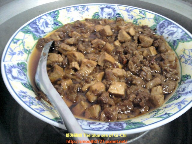 3. 炒鍋倒入少許芥花油,油熱後改成中火先放入花椒粒爆香後,然後撈起花椒粒殘渣,再放入切細的蔥白爆香,然後放入豬五花絞肉、切成方塊狀的豆干、切成細末的榨菜,慢慢炒至豬絞肉都變成白色後,改小火倒入步驟2之調味料慢慢拌炒,若是太乾可以倒入少許芥花油,拌炒至醬汁稍微變稠,而且醬與油分離,關火蓋上鍋蓋 悶20~30分鐘就大功告成。